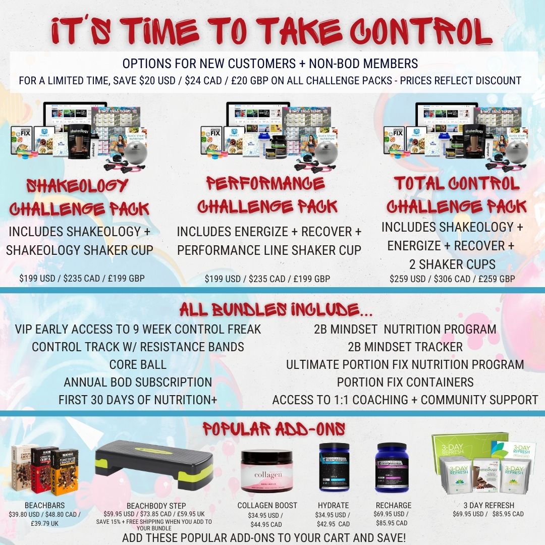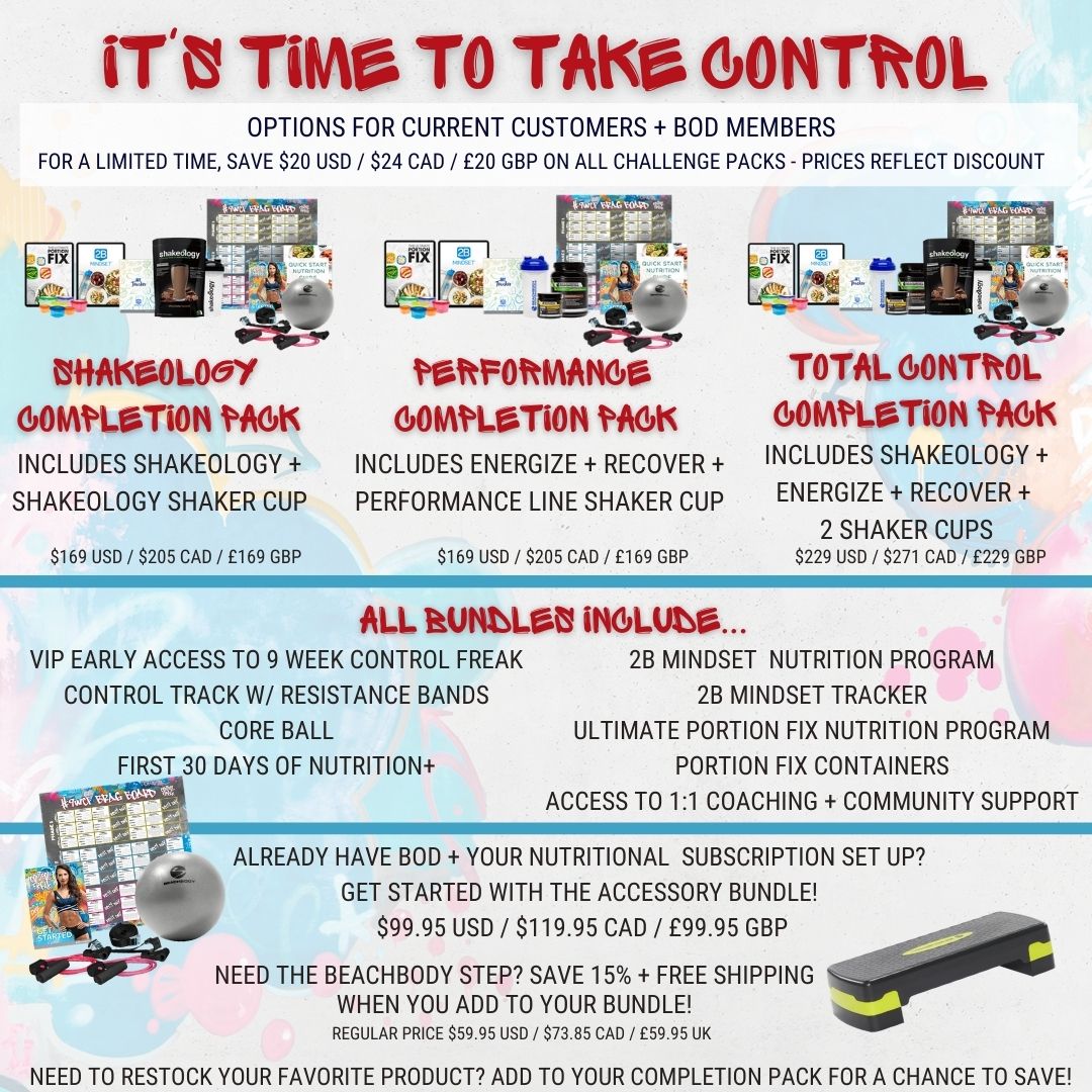 When you've decided which pack option is the best for you + your goals, the links are below to complete your 9 Week Control Freak purchase.