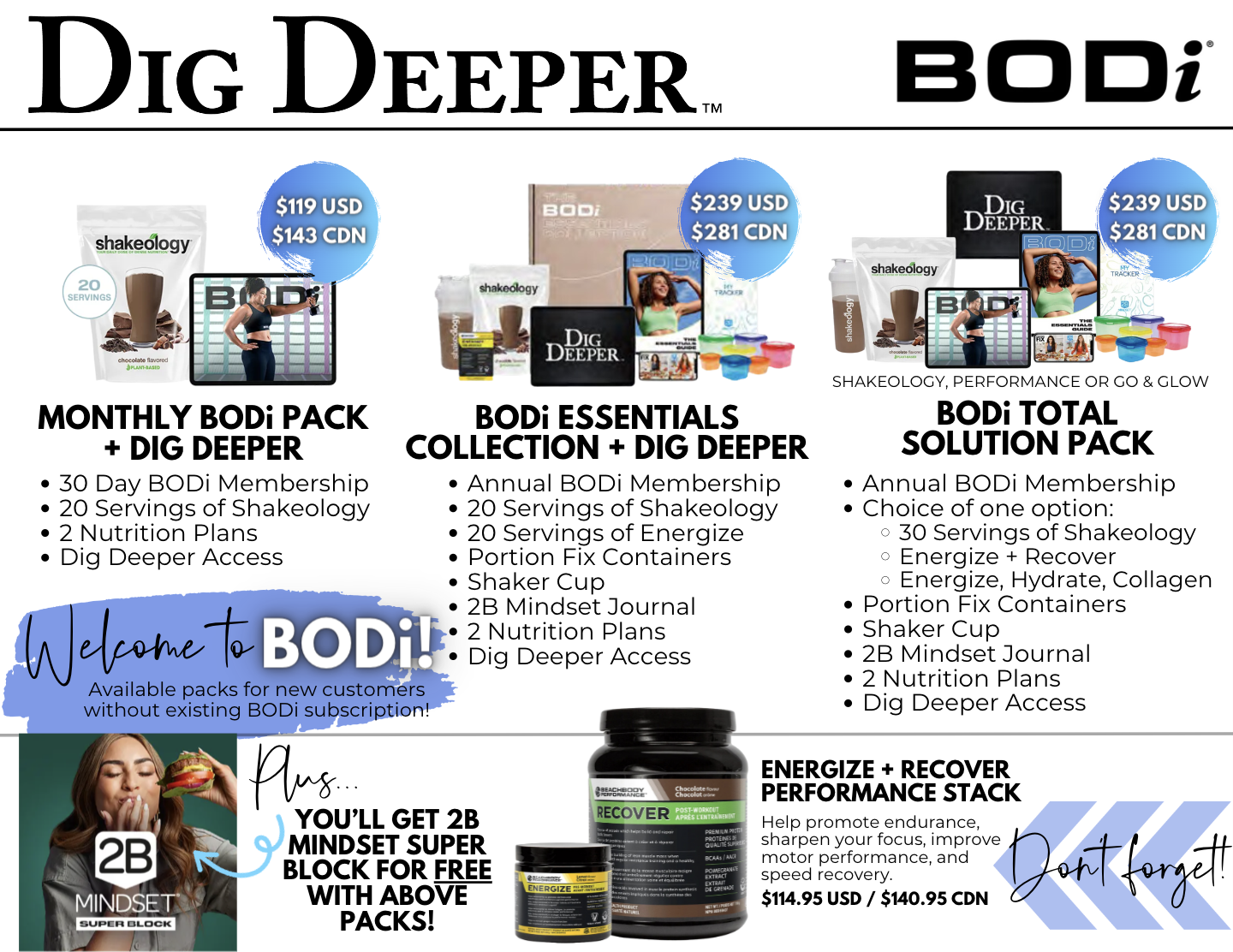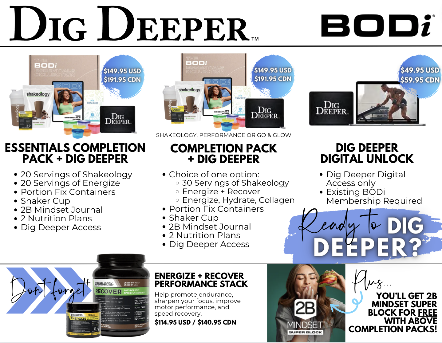 Once you find the pack for you, please let your BODi Partner know your Dig Deeper selection!